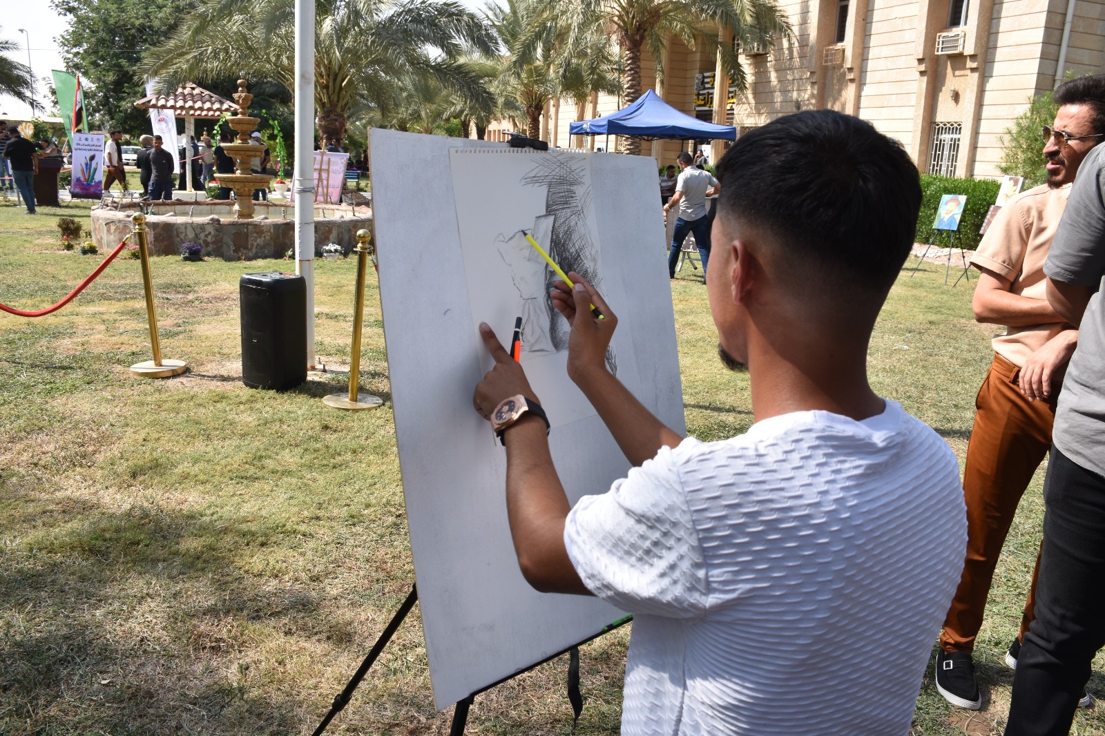 شاركت كلية التربية للعلوم الإنسانية في الفعالية الفنية ( المعرض و الرسم ) و التي أقيمت في كلية الزراعة و بالتعاون مع قسم النشاطات الطلابية في رئاسة الجامعة اليوم الأربعاء الموافق (٢٠٢٤/١٠/١٦) ، اذ تضمن المعرض فعالية الرسم الحر ، وقد حصد الطالب احمد عبد زيدان قسم التربية الفنية المرحلة الثانية المركز الأول . اذ تثمن عمادة كلية التربية للعلوم الإنسانية متمثلةً بالسيد عميد الكلية الأستاذ الدكتور عماد حميد احمد جهود طلبتها في رفع اسم كليتنا من خلال المشاركة بهكذا نشاطات فنية ، راجين دوام الموفقية والعطاء خدمة لكليتنا ولجامعتنا الحبيبة.