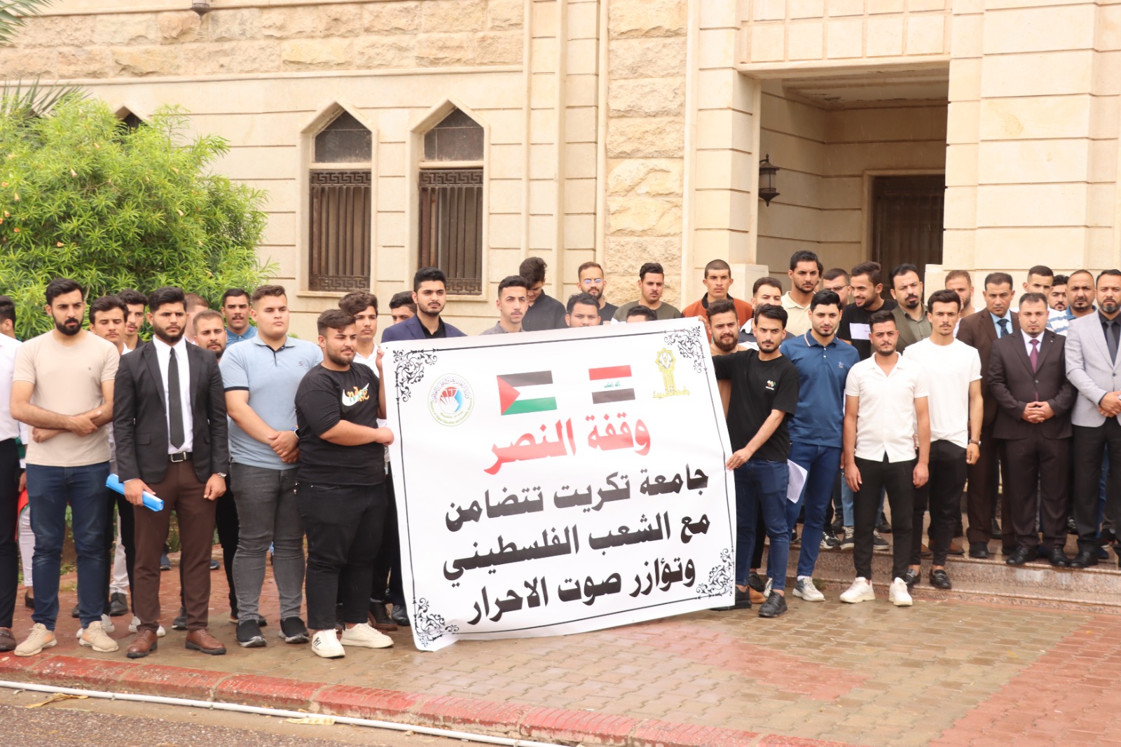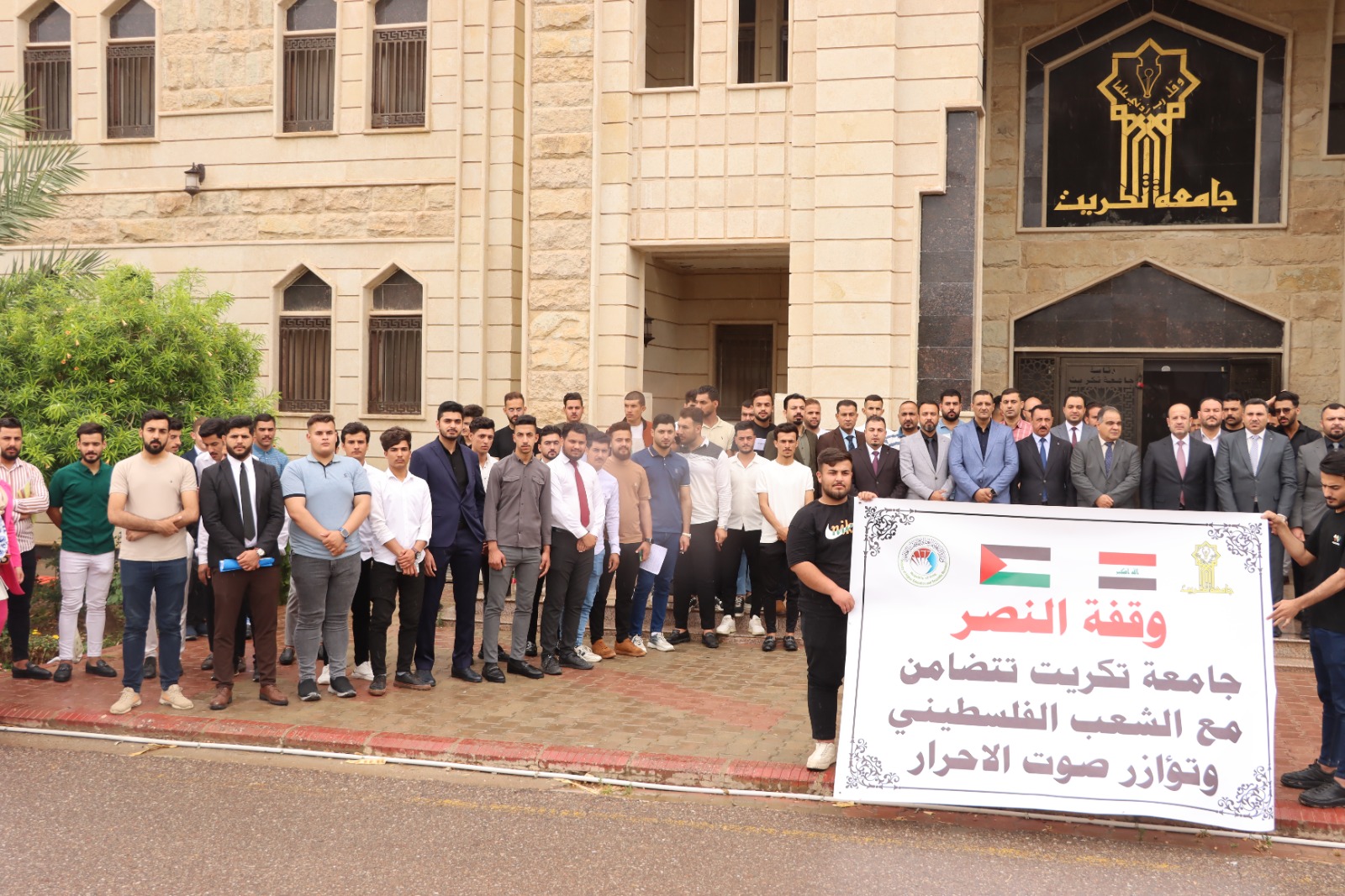 كلية التربية للعلوم الانسانية تشارك في وقفة النصر مع الشعب الفلسطيني التي اقامتها جامعة تكريت وتؤازر صوت الاحرار في غزة