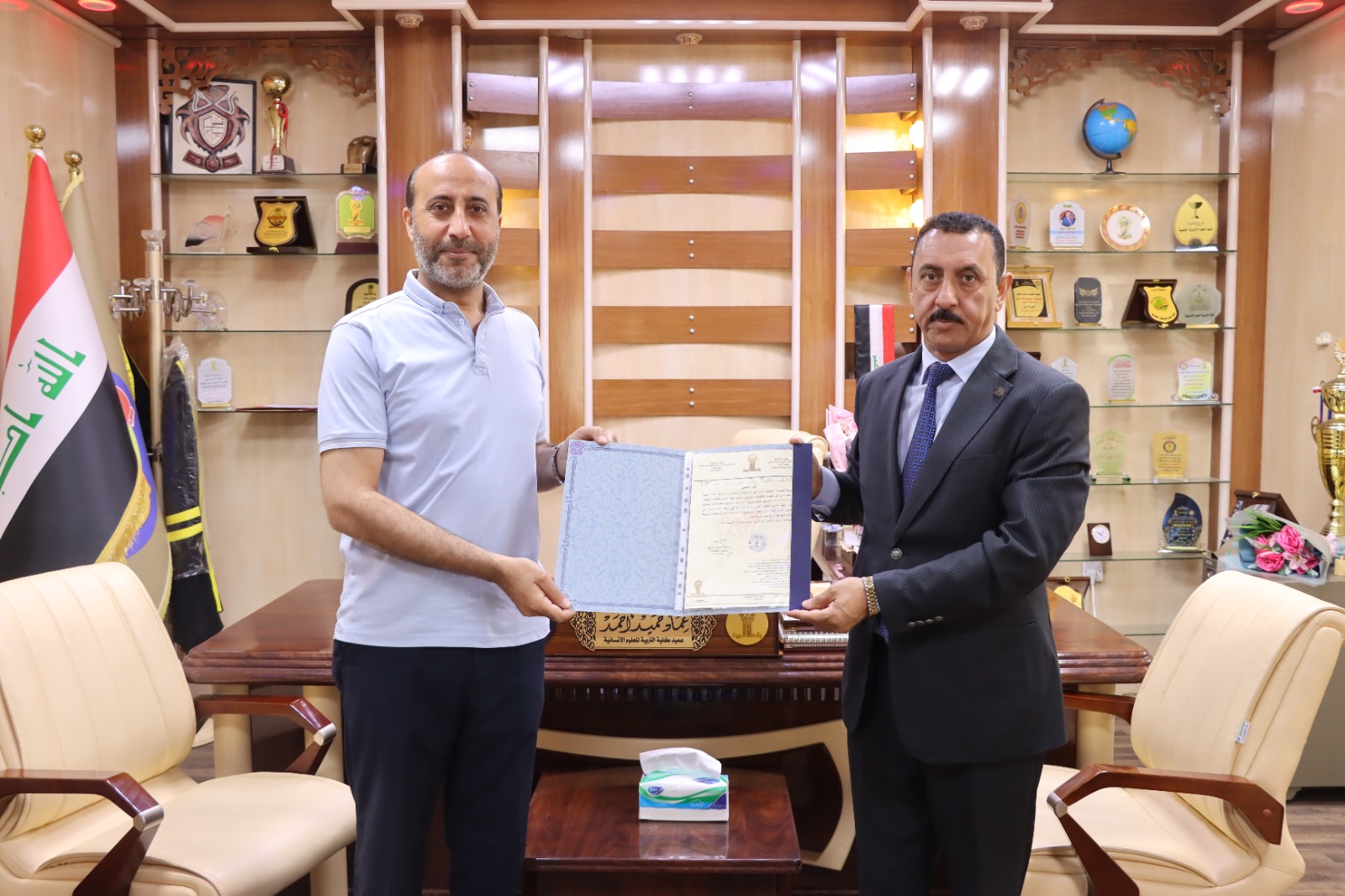 هنأت عمادة كلية التربية للعلوم الإنسانية متمثلةً بالسيد عميد الكلية الأستاذ الدكتور عماد حميد احمد اليوم الثلاثاء الموافق (٢٠٢٤/٥/١٤) السيد مدير شعبة الحسابات في كليتنا الدكتور خضر جاسم حمد الفحل بمناسبة صدور الامر الجامعي القاضي بترقيته إلى مرتبة (استاذ مساعد دكتور) راجين له دوام الموفقية والنجاح في مسيرته العلمية خدمة لكليتنا ولجامعتنا الحبيبة.