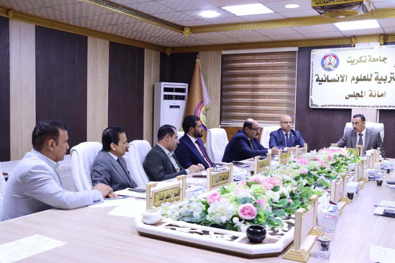 عقد مجلس كلية التربية للعلوم الانسانية اليوم الاثنين الموافق الموافق (٢٠٢٦/٤/٦) جلسته العشرون للعام الدراسي ٢٠٢٥-٢٠٢٦ ، برئاسة السيد عميد الكلية الاستاذ الدكتور عماد حميد أحمد وبحضور السادة اعضاء مجلس الكلية ، اذ تضمنت الجلسة مناقشة امور عدة تخص التهيئة للامتحانات النهائية لطلبة الدراسات العليا وطلبة الدراسات الأولية وتوفير كافة الاحتياجات اللازمة لإنجاح العملية الامتحانية، و مد جسور التعاون العلمي بين الكليات .