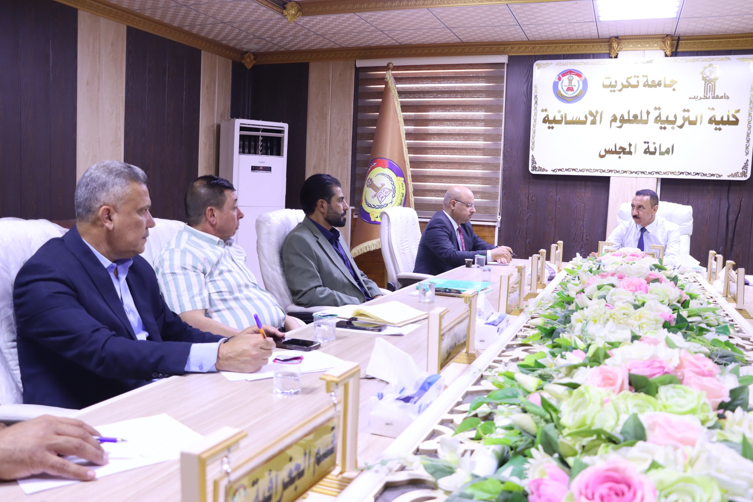 عقد مجلس كلية التربية للعلوم الانسانية اليوم الاثنين الموافق (٢٠٢٥/٩/١٥) جلسته الثالثة للعام الدراسي ٢٠٢٥-٢٠٢٦ ، برئاسة السيد عميد الكلية الاستاذ الدكتور عماد حميد أحمد وبحضور السادة اعضاء مجلس الكلية ، اذ تضمنت الجلسة مناقشة امور عدة تخص لمصلحة العامة للكلية والاستعدادات اللازمة لاستقبال الطلبة للعام الدراسي الجديد .