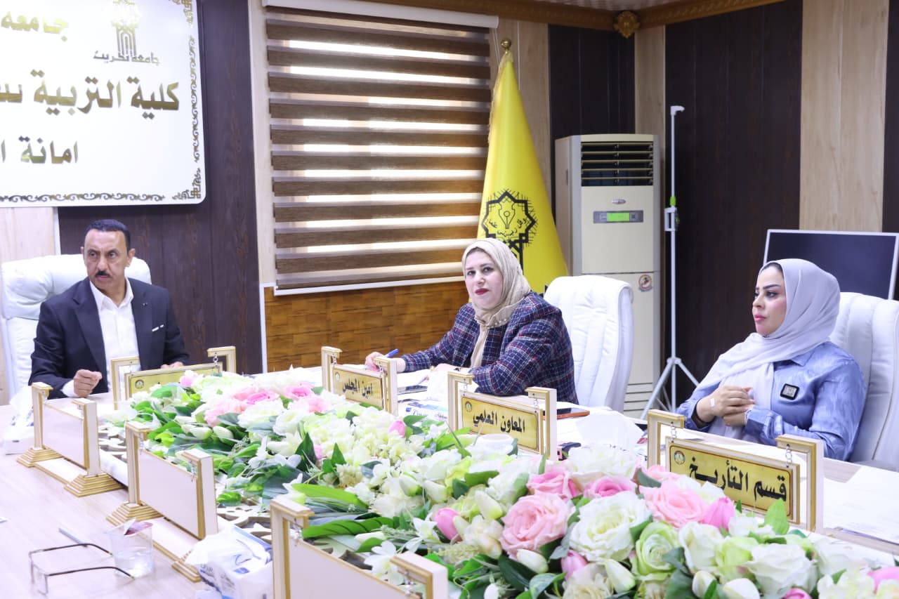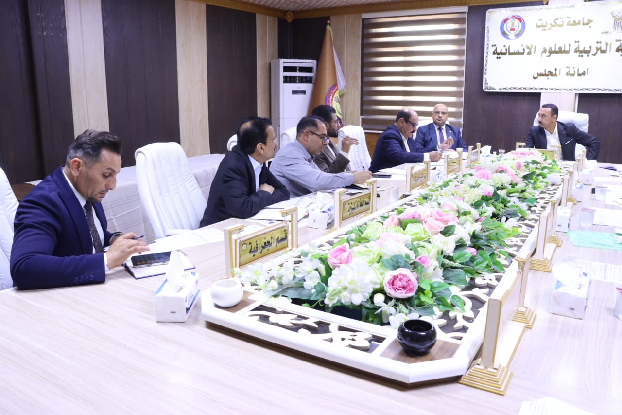 عقد مجلس كلية التربية للعلوم الانسانية اليوم الاثنين الموافق (٢٠٢٦/٤/٢٧) جلسته الثانية والعشرون للعام الدراسي ٢٠٢٥-٢٠٢٦ ، برئاسة السيد عميد الكلية الاستاذ الدكتور عماد حميد أحمد وبحضور السادة اعضاء مجلس الكلية ، اذ تضمنت الجلسة مناقشة امور عدة تخص لمصلحة العامة للكلية ومد جسور التعاون العلمي بين الكليات ، والتحضير للامتحانات النهائية لطلبة الدراسات الأولية ، والتحضير لاستقبال الطلبة المتقدمين للدراسات العليا للعام الدراسي ٢٠٢٦-٢٠٢٧.