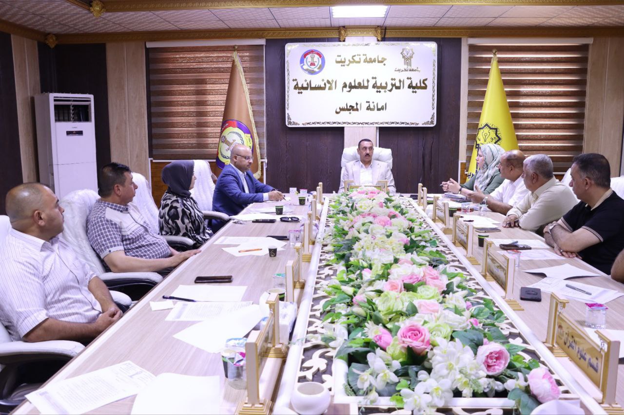 عقد مجلس كلية التربية للعلوم الانسانية اليوم الثلاثاء الموافق الموافق (٢٠٢٥/٧/٢٩) جلسته الثانية و الثلاثون للعام الدراسي ٢٠٢٤-٢٠٢٥ ، برئاسة السيد عميد الكلية الاستاذ الدكتور عماد حميد أحمد وبحضور السادة اعضاء مجلس الكلية ، اذ تضمنت الجلسة مناقشة امور عدة تخص المصلحة العامة للكلية ومد جسور التعاون العلمي بين الكليات والتأكيد على العمل بنظام SIS .