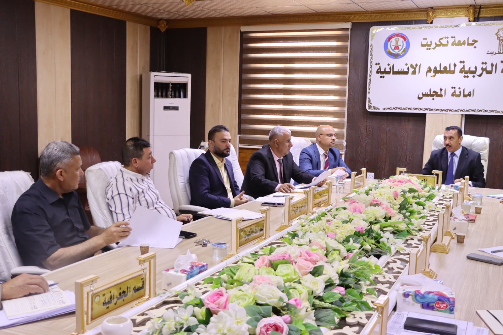 عقد مجلس كلية التربية للعلوم الانسانية اليوم الاثنين الموافق (٢٠٢٤/٤/١٥) جلسته الثالثة و العشرون للعام الدراسي ٢٠٢٣-٢٠٢٤ ، برئاسة السيد عميد الكلية الاستاذ الدكتور عماد حميد أحمد وبحضور السادة اعضاء مجلس الكلية اذ تضمنت الجلسة مناقشة امور عدة تخص المصلحة العامة منها مناقشة الخلفية العلمية للاقسام والمقاصة العلمية وتوسعة آفاق التعاون بين الكليات ، ومتابعة دوام طلبة الدراسات العليا و الاولية .