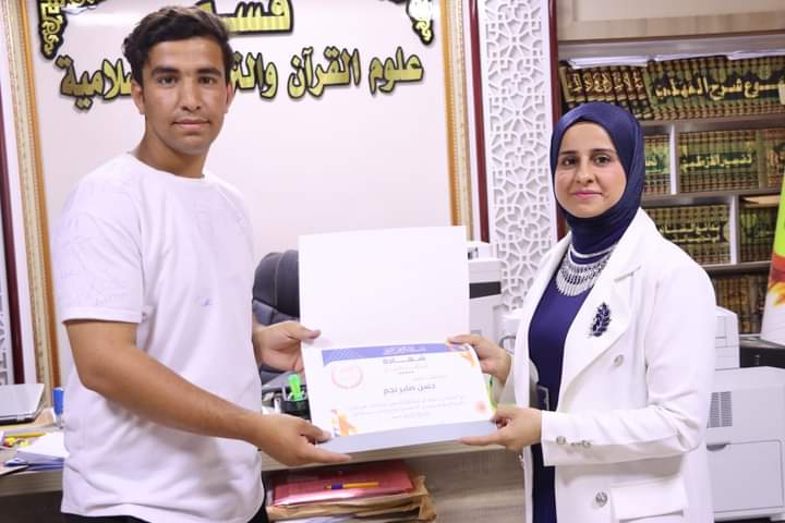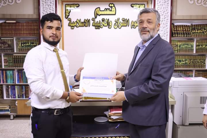 كرم السيد رئيس قسم علوم القرآن والتربية الاسلامية الاستاذ المساعد الدكتور عقيل عبد المجيد سعيد والمدرس الدكتورة نور سعد حمود المشرفة على فريق اللؤلؤ المكنون اعضاء الفريق اليوم الاثنين الموافق (٢٠٢٤/٦/٣) بشهادات تقديرية تثمينا لجهودهم المبذولة خلال مشاركتهم في الأنشطة والفعاليات والمبادرات الصفية واللا صفية التي تنفذت خلال العام الدراسي 2023_2024 . اذ تثمن عمادة كلية التربية للعلوم الإنسانية متمثلةً بالسيد عميد الكلية الأستاذ الدكتور عماد حميد احمد جهود اساتيذ وطلبة قسم علوم القرآن في اقامة النشاطات التطوعية خلال العام الدراسي المنصرم والتي تهدف إلى بث روح التعاون بين طلبة الجامعة ، راجين لهم دوام الموفقية والنجاح في مسيرتهم العلمية.