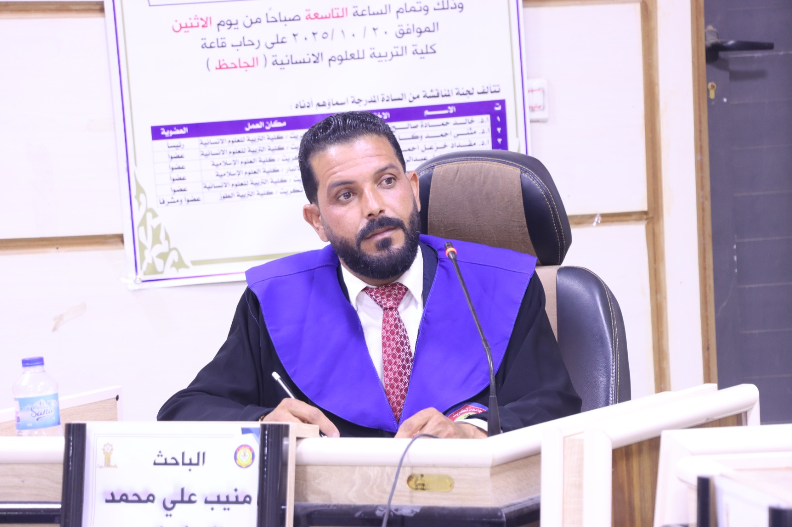 نوقشت في كلية التربية للعلوم الإنسانية قسم علوم القرآن والتربية الإسلامية اليوم الاثنين الموافق (٢٠٢٥/١٠/٢٠) أطروحة الدكتوراه للطالب (منيب علي محمد) الموسومة (الرواة الذين ذكرهم الامام شمس الدين الذهبي في كتابه : ذكر من أسماء من تكلم فيه وهو موثوق وديوان الضعفاء والمتروكين - جمعاً ودراسة من ترجمة ٧١ إلى ترجمة ١٧٠) .