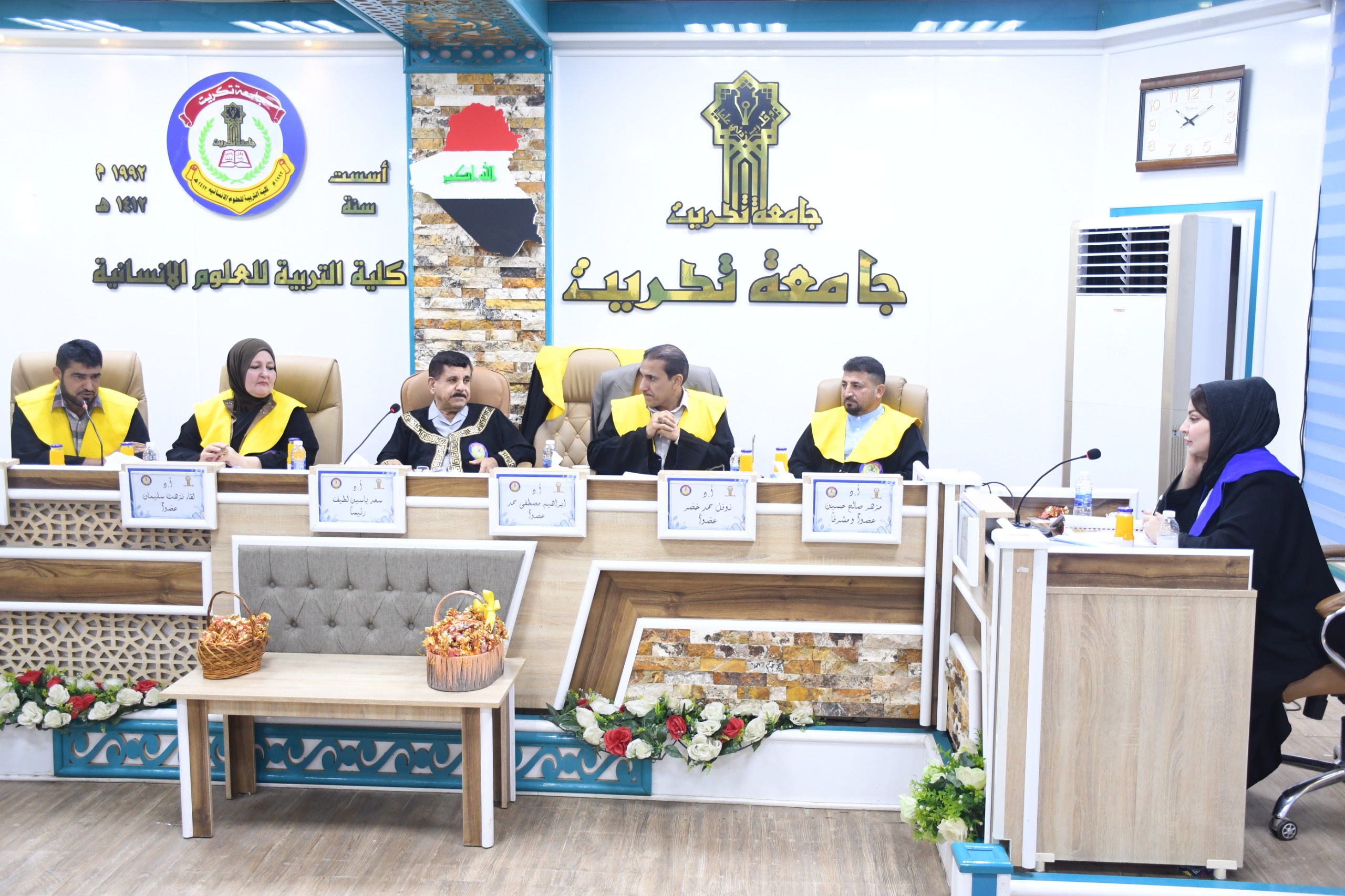 نوقشت في كلية التربية للعلوم الإنسانية قسم التاريخ اليوم الخميس الموافق (18/9/2025) اطروحة الدكتوراه للطالبة بسمة إبراهيم خلف الموسومة (شعر محمود سامي البارودي دراسة وفق المنهج الاجتماعي).
