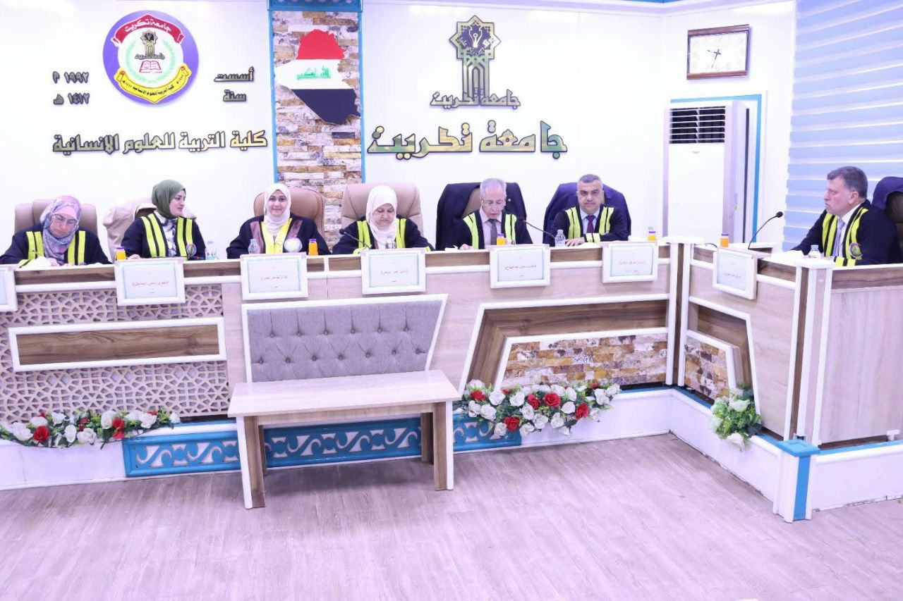 نوقشت في كلية التربية للعلوم الإنسانية قسم اللغة الانكليزية اليوم الثلاثاء الموافق (2025/9/2) اطروحة الدكتوراه للطالب (موفق حميد عليوي الجبوري) ، الموسومة (The Effect of Metacognitive and Modeling Strategies on Iraqi EFL University Students' Creative Thinking and Writing Skill - اثر استراتيجيات ما وراء المعرفة والنمذجة على مهارات التفكير الابداعي ومهارة الكتابة لدى طلبة الجامعة العراقيين دارسي اللغة الانكليزية لغة اجنبية ). اذ تهدف الدراسة الحالية إلى التعرف على أثر استراتيجيتي ما وراء المعرفة ، ولتحقيق هذا الهدف، صيغت فرضيتان صفريتان، وتم استخدام المنهج التجريبي بثلاث مجموعات متكافئة. وتمثل مجتمع البحث بجميع طلبة المرحلة الثالثة في قسم اللغة الإنجليزية، كلية التربية للعلوم الإنسانية، جامعة تكريت، للعام الدراسي 2024-2025. حيث تكونت عينة البحث من (120) طالب وطالبة، ووزعت عشوائيًا على ثلاث مجموعات: المجموعة التجريبية الأولى التي دُرست باستراتيجية ما وراء المعرفة، والمجموعة التجريبية الثانية التي دُرست باستراتيجية النمذجة، والمجموعة الضابطة التي دُرست بالطريقة التقليدية. وقد جرت عملية التكافؤ بين المجموعات من حيث عدد من المتغيرات. تضمنت أدوات البحث اختبارًا للتفكير الإبداعي وآخر لمهارة الكتابة، وقد تم التحقق من صدق الاختبارين وثباتهما، فضلاً عن تحديد مستوى الصعوبة ومعامل التمييز إحصائيًا. وأظهرت النتائج أن كلتا الاستراتيجيتين لهما أثر إيجابي في تحسين التفكير الإبداعي ومهارات الكتابة لدى الطلبة، وكانت استراتيجية ما وراء المعرفة أكثر فاعلية.