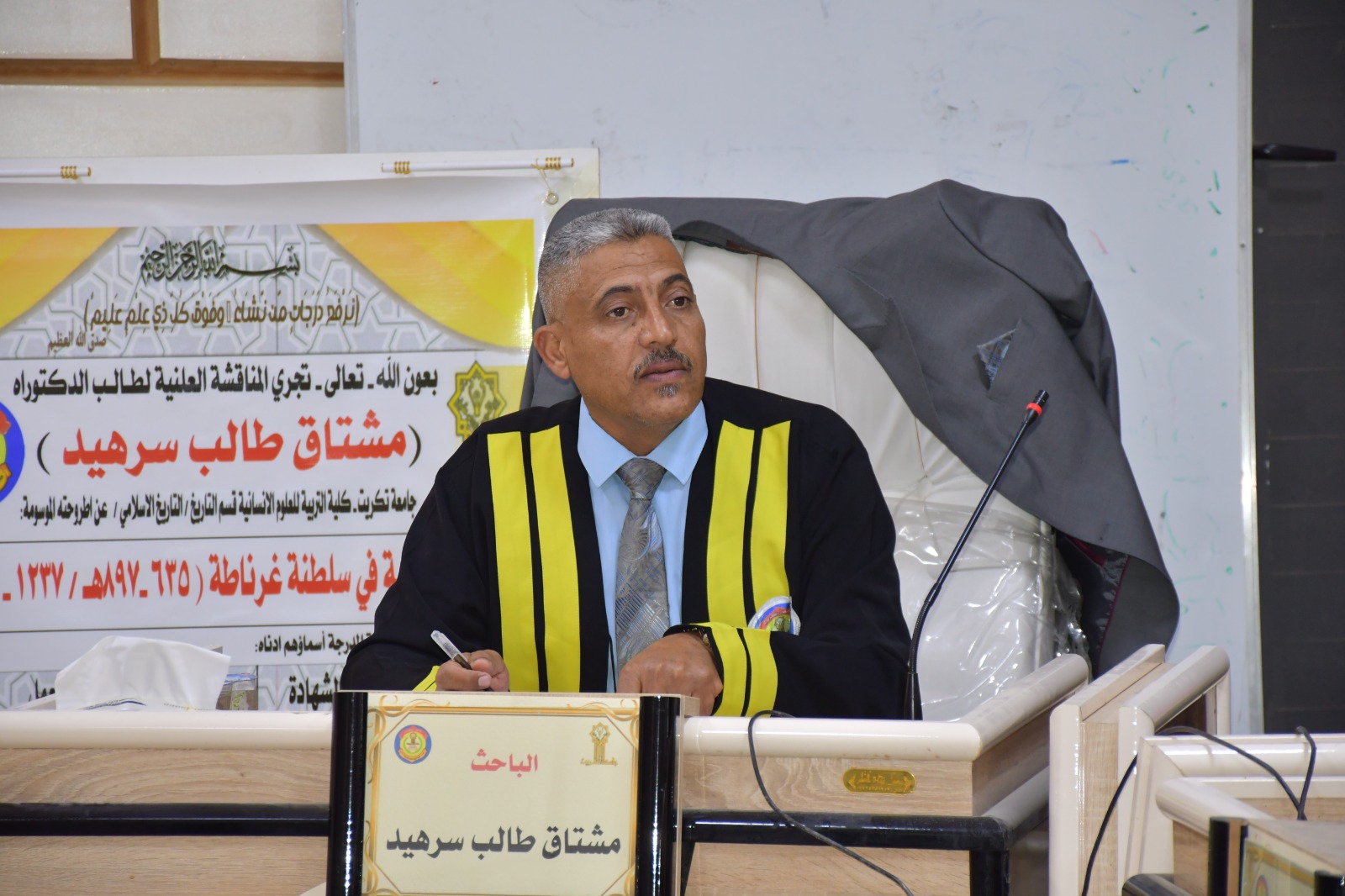 نوقشت في كلية التربية للعلوم الإنسانية قسم التاريخ اليوم الاربعاء الموافق (19/2/2025) اطروحة الدكتوراه للطالب مشتاق طالب سرهيد العيساوي ، الموسومة (التدابير الأمنية في سلطنة غرناطة (٦٣٥ - ٨٩٧ هـ/١٢٣٧ - ١٤٩٢م).