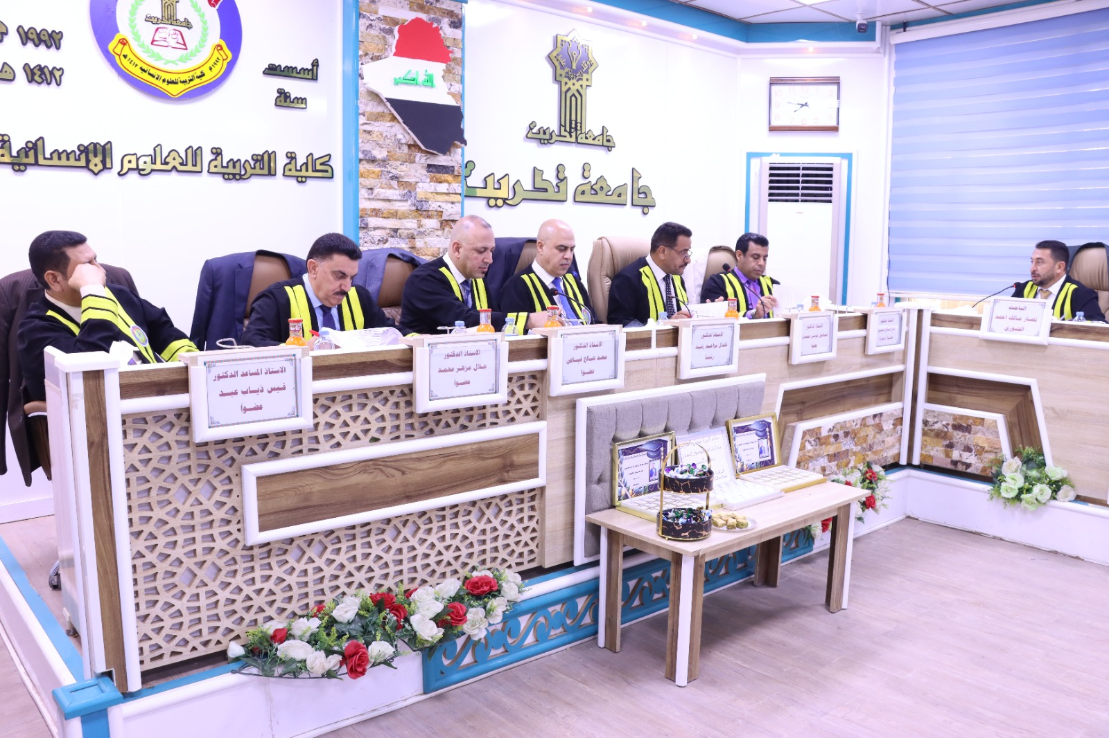 نوقشت في كلية التربية للعلوم الإنسانية قسم العلوم التربوية والنفسية اليوم الأحد الموافق (٢٠٢٥/٤/٦) أطروحة الدكتوراه للطالب نصار مالك احمد ، الموسومة (فاعلية استراتيجيتين مقترحتين على وفق مهارات التفكير المنطقي في اكتساب المفاهيم البلاغية عند طلاب الصف الرابع الادبي وتنمية تفكيرهم الجدلي).