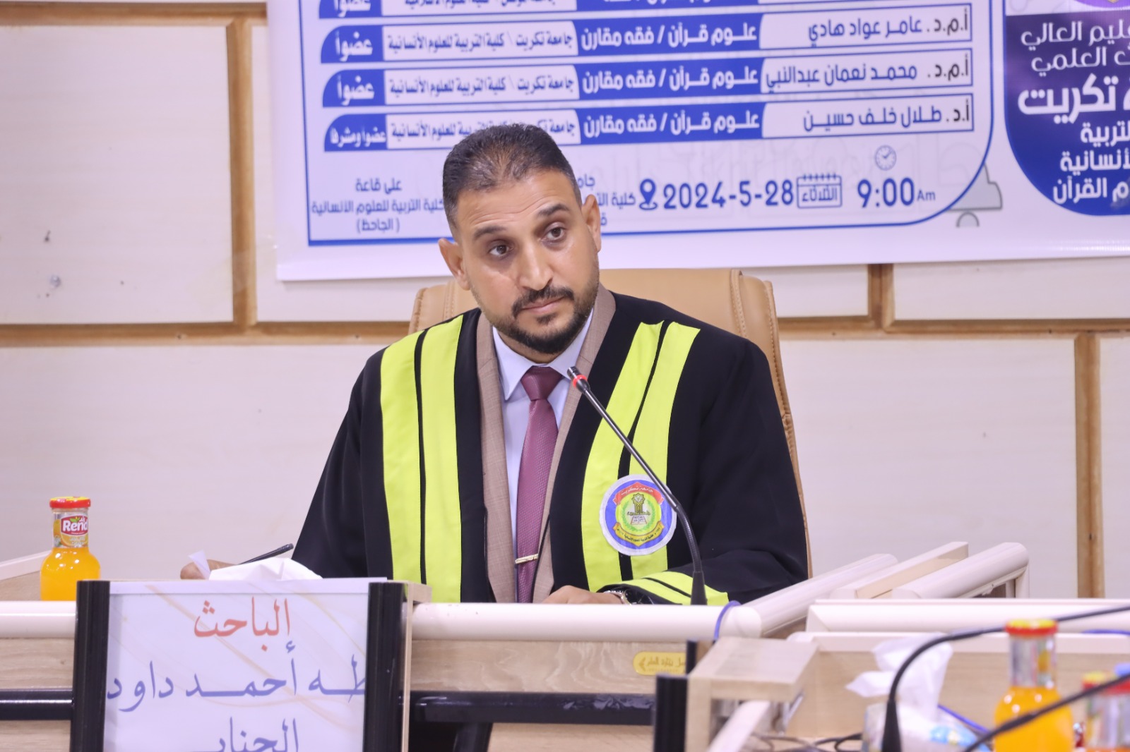 نوقشت في كلية التربية للعلوم الانسانية قسم علوم القرآن والتربية الاسلامية اليوم الثلاثاء الموافق (28/5/2024) اطروحة الدكتوراه للطالب طه أحمد داود الجنابي ، الموسومة (حاشية العلامة الكوراني(ت: ١٠٠٠هـ ) على شرح السيد على السراجية في الفرائض من حالات الام إلى نهاية فصل في معرفة قسمة التركات بين الورثة والغرماء ( دراسة تحقيق وتعليق).