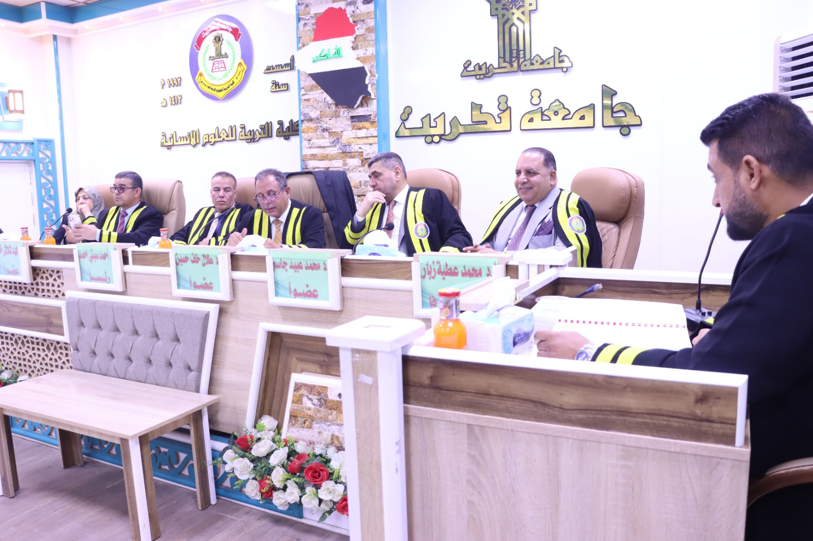 نوقشت في كلية التربية للعلوم الإنسانية قسم علوم القرآن والتربية الاسلامية اليوم الخميس الموافق (8/5/2025) اطروحة الدكتوراه للطالب داود احمد داود الجنابي ، الموسومة (تبيين الهداية وتوضيح البداية لسيد حافظ محمد بن أحمد بن الشيخ مصطفى الكدوسي (ت1253هـ) من (باب ما يكون يمينا وما لا يكون الى فصل في كيفية القطع واثباته - دراسة وتحقيق وتعليق).