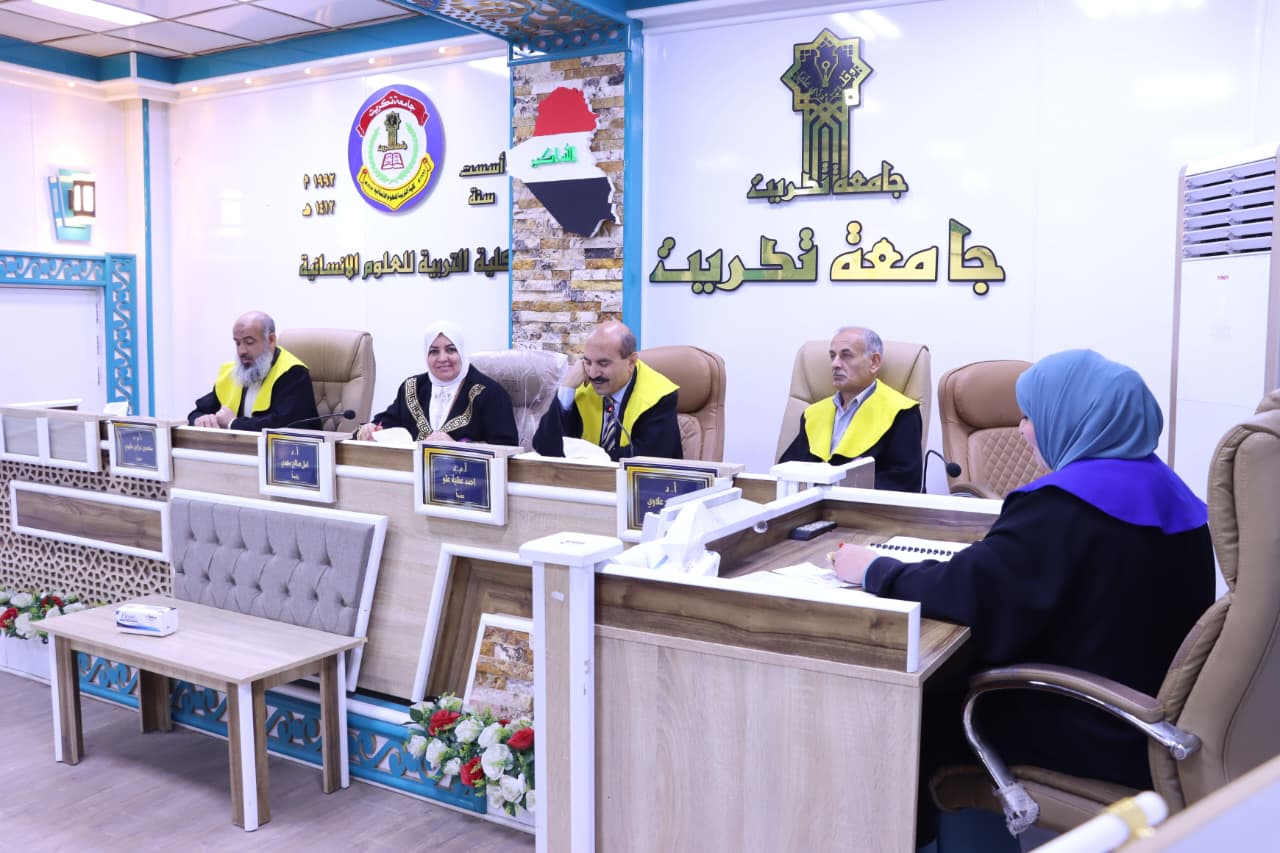 نوقشت في كلية التربية للعلوم الإنسانية قسم اللغة العربية اليوم الاحد الموافق (8/3/2026) رسالة الماجستير للطالبة (إيمان سلامة محمد لطيف) الموسومة (اختلاف الرواية النحوية و أثرها في توجيه المعنى في ديوان الحطيئة).