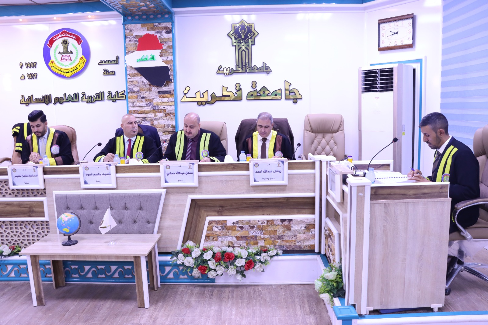 نوقشت في كلية التربية للعلوم الإنسانية قسم الجغرافية اليوم الاحد الموافق (24/8/2025) رسالة الماجستير للطالب (محمد أحمد عبدالغني الجبوري) الموسومة (التباين المكاني لأسعار الاراضي وانعكاساتها على البيئة الحضرية في مدينة الحويجة).