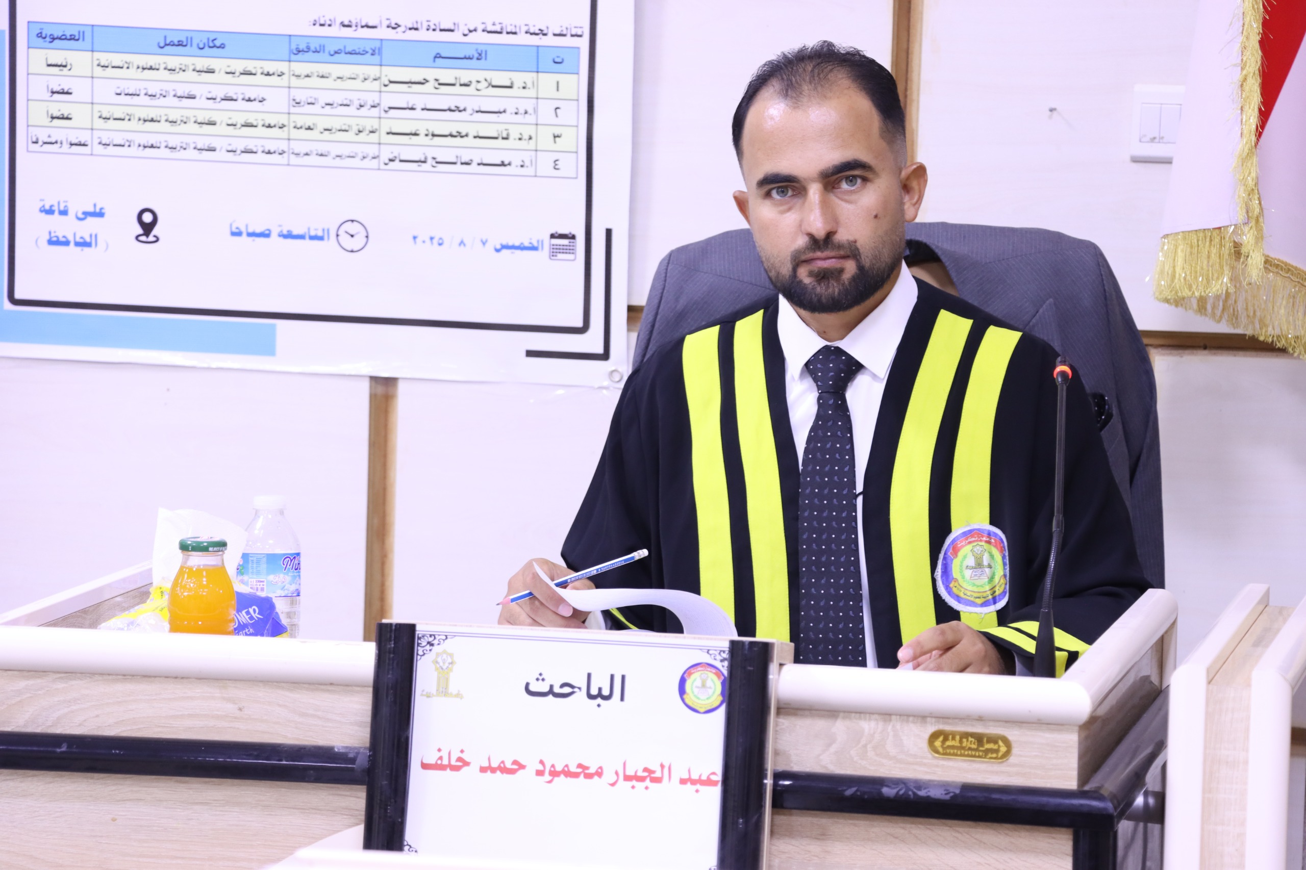 نوقشت في كلية التربية للعلوم الإنسانية قسم العلوم التربوية و النفسية اليوم الخميس الموافق (7/8/2025) رسالة الماجستير للطالب عبدالجبار محمود حمد و الموسومة (أثر انموذج الاستقصاء التقدمي في اكتساب المفاهيم الفلسفية لدى طلاب الصف الخامس الادبي وتنمية تفكيرهم التنبؤي)