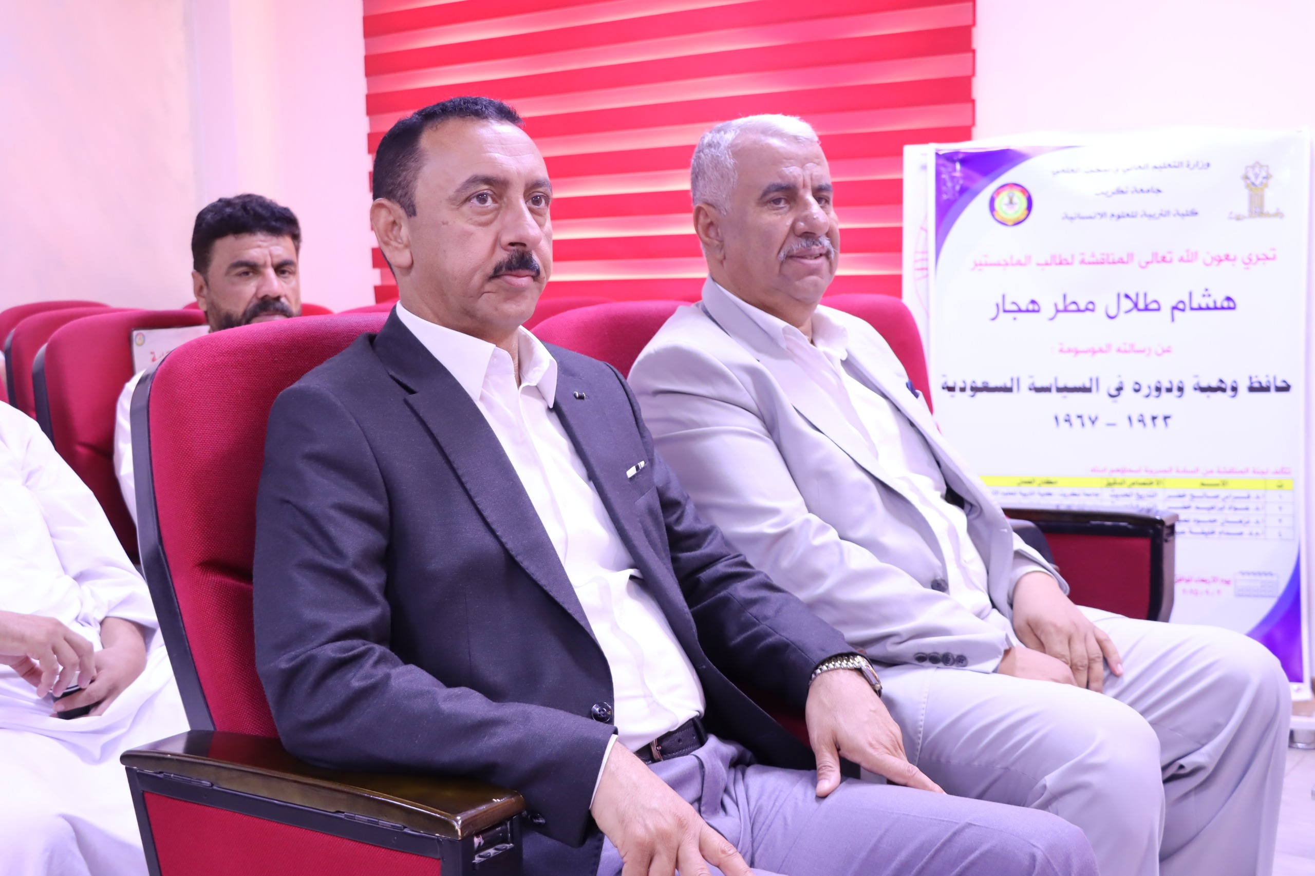 نوقشت في كلية التربية للعلوم الإنسانية قسم التاريخ اليوم الاربعاء الموافق (3/9/2025) رسالة الماجستير للطالب (هشام طلال مطر العبيدي) الموسومة (حافظ وهبة ودوره في السياسة السعودية (١٩٢٣ – ١٩٦٧م).