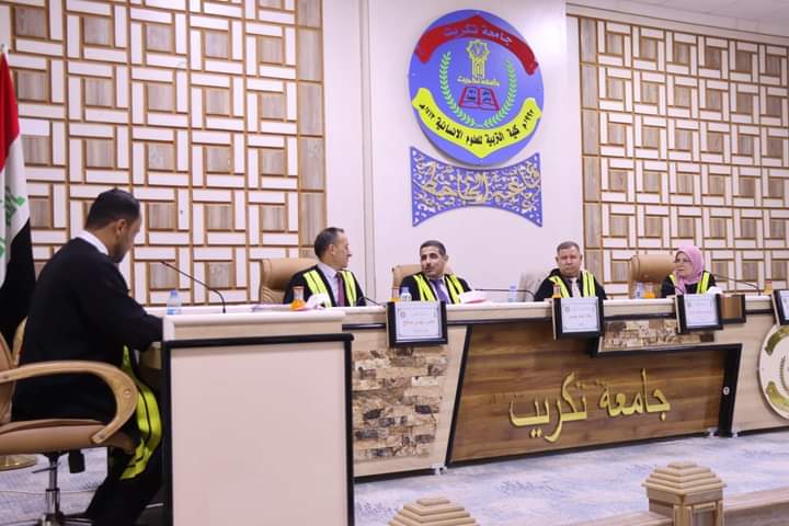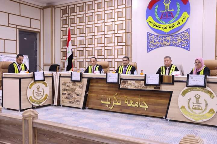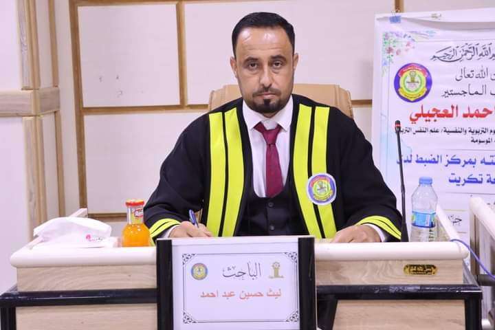 نوقشت في كلية التربية للعلوم الانسانية قسم العلوم التربوية والنفسية اليوم الثلاثاء الموافق (٢٠٢٤/٤/٦) رسالة الماجستير للطالب ليث حسين عبد العجيلي ، الموسومة (السلوك التوافقي وعلاقته بمركز الضبط لدى طلبة جامعة تكريت). اذ يهدف البحث الحالي الى الكشف عن السلوك التوافقي وعلاقته بمركز الضبط لدى طلبة الجامعة والتعرف على الفروق المعنوية لكل من متغيري (ذكور_إناث) والتخصص (علمي _أنساني) لدى عينة من طلبة الجامعة. حيث بلغت عينة البحث (٣٠٠) طالب وطالبة . وتم بناء مقياس السلوك التوافقي بصورته النهائية المكون من (٣٨) فقرة موزعة على ستة مجالات هي (الاجتماعي ،الانفعالي،الاكاديمي،الاسري، الصحي، الديني) اما المتغير الثاني هوه مركز الضبط الذي تكون المقياس بصورته النهائية من (٢٩)فقرة موزعة الى (أوب). طبق الباحث المقياسيين على عينة البحث الاساسية المكونة من (٣٠٠) طالباً و طالبة من طلبة جامعة تكريت بواقع (١٣١)من الذكور (١٦٩)من الاناث، وبعد جمع الاستمارات عولجت البيانات احصائياً بستعمال الاختبار التائي ومعامل ارتباط بيرسون. وقد توصلت الدراسة الى نتائج عديدة منها :
