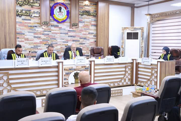 نوقشت في كلية التربية للعلوم الإنسانية قسم العلوم التربوية والنفسية اليوم الثلاثاء الموافق (٢٠٢٥/٦/١٧) رسالة الماجستير للطالبة (مريم عبدالله علي) الموسومة (اثر استراتيجية باير في تحصيل طالبات الصف الخامس الادبي في مادة مبادئ الفلسفة وعلم النفس وتنمية تفكيرهن التاملي). وتألفت لجنة المناقشة من السادة التدريسيين:
