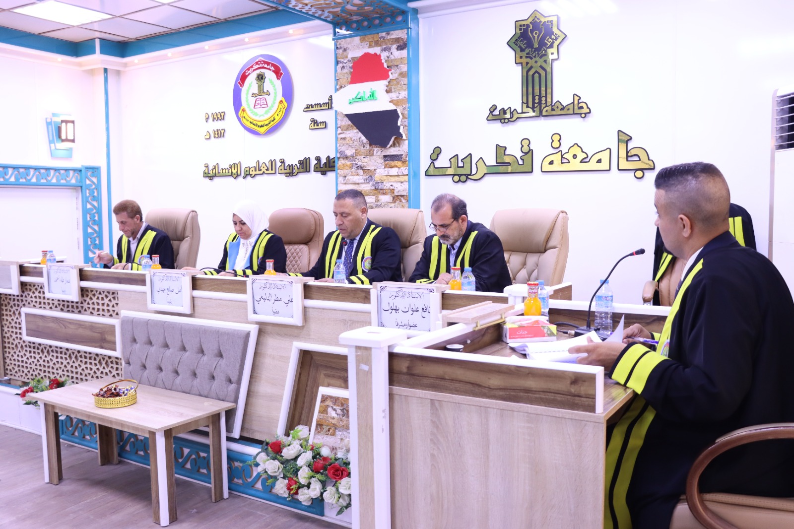نوقشت في كلية التربية للعلوم الإنسانية قسم اللغة العربية اليوم الاثنين الموافق (28/4/2025) رسالة الماجستير للطالب عدي صدام أحمد المفرجي ، الموسومة (تداخل العوامل في كتب الوقف والابتداء للقرن الرابع للهجرة).