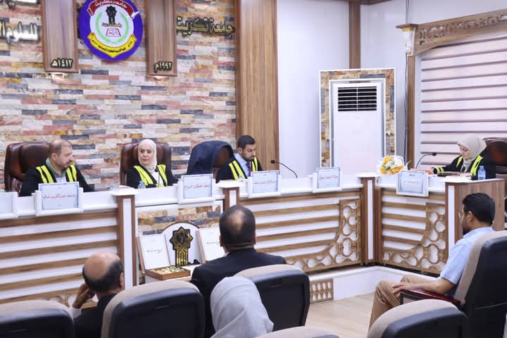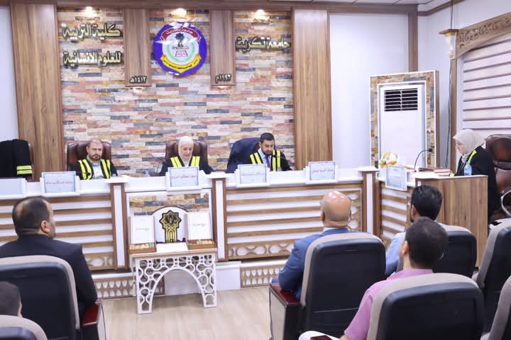 نوقشت في كلية التربية للعلوم الإنسانية قسم اللغة العربية اليوم الاثنين الموافق (21/7/2025) رسالة الماجستير للطالبة (مروج حسام طه التكريتي) الموسومة (الشذوذ الصرفي في كتاب ارتشاف الضرب من لسان العرب لأبي حيان الأندلسي (ت745هـ)).