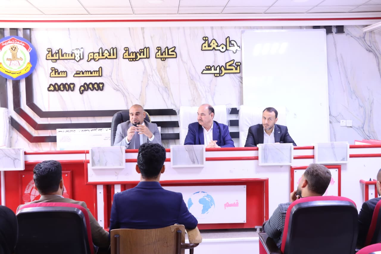 برعاية السيد رئيس جامعة تكريت الأستاذ الدكتور وعد محمود رؤوف، وبإشراف السيد عميد كلية التربية للعلوم الإنسانية الأستاذ الدكتور عماد حميد أحمد، يقيم قسم الجغرافية في كليتنا بالتعاون مع مركز التعليم المستمر دورة علمية بعنوان (الدراسة الميدانية بين التأصيل النظري في الفكر الجغرافي الحديث وتطبيقاتها في جغرافية السكان) للمدة (٣-٤/ ٣/ ٢٠٢٦).