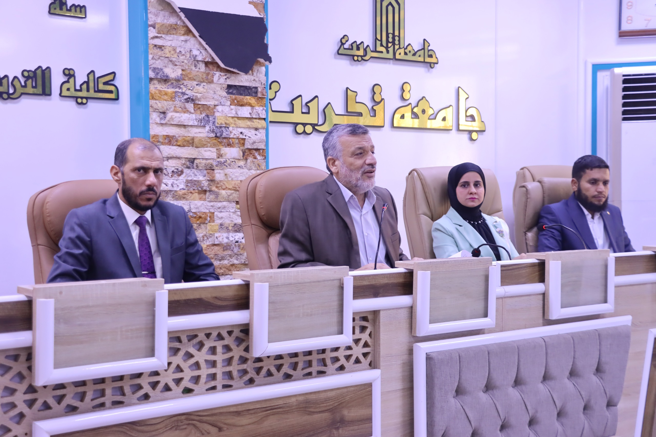 برعاية السيد رئيس جامعة تكريت الاستاذ الدكتور وعد محمود رؤوف وبإشراف السيد عميد كلية التربية للعلوم الإنسانية الاستاذ الدكتور عماد حميد احمد اقام قسم علوم القرآن والتربية الإسلامية في كليتنا بالتعاون مع مركز التعليم المستمر اليوم الأحد الموافق (٢٠٢٥/١٠/٢٦) ندوة علمية بعنوان (مفهوم الإشاعة وأثرها على الأوساط الجامعية _ نظرة شرعية) .