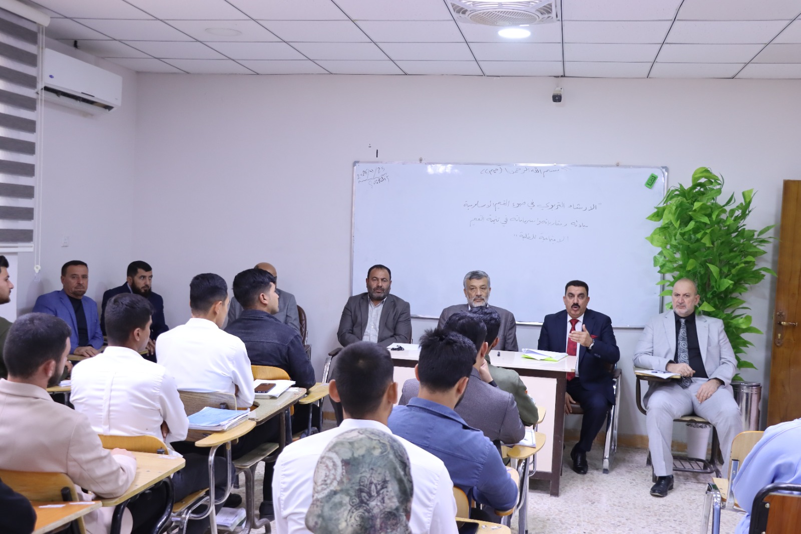 برعاية السيد رئيس جامعة تكريت الاستاذ الدكتور وعد محمود رؤوف وبإشراف السيد عميد كلية التربية للعلوم الإنسانية الاستاذ الدكتور عماد حميد احمد اقام قسم علوم القرآن والتربية الإسلامية في كليتنا اليوم الثلاثاء الموافق (٢٠٢٥/١١/٢٥) ندوة توعوية بعنوان (الإرشاد التربوي في ضوء القيم الإسلامية: مبادئه ومقارباته وإسهامه في تنمية القيم الاجتماعية للطلبة).