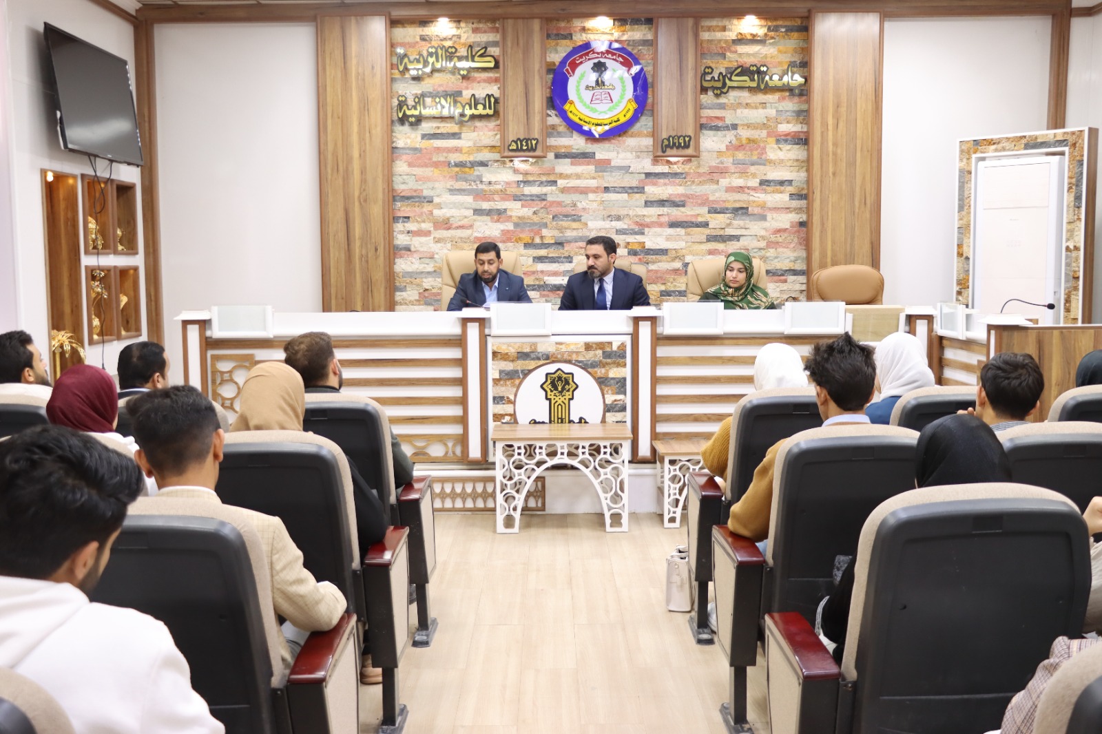 برعاية السيد رئيس جامعة تكريت الاستاذ الدكتور وعد محمود رؤوف وباشراف السيد عميد كلية التربية للعلوم الإنسانية الاستاذ الدكتور عماد حميد احمد اقام قسم اللغة العربية في كليتنا بالتعاون مع مركز التعليم المستمر دورة علمية بعنوان (دور المؤسسات التربوية في تعزيز اللغة من خلال ثقافة الحوار).