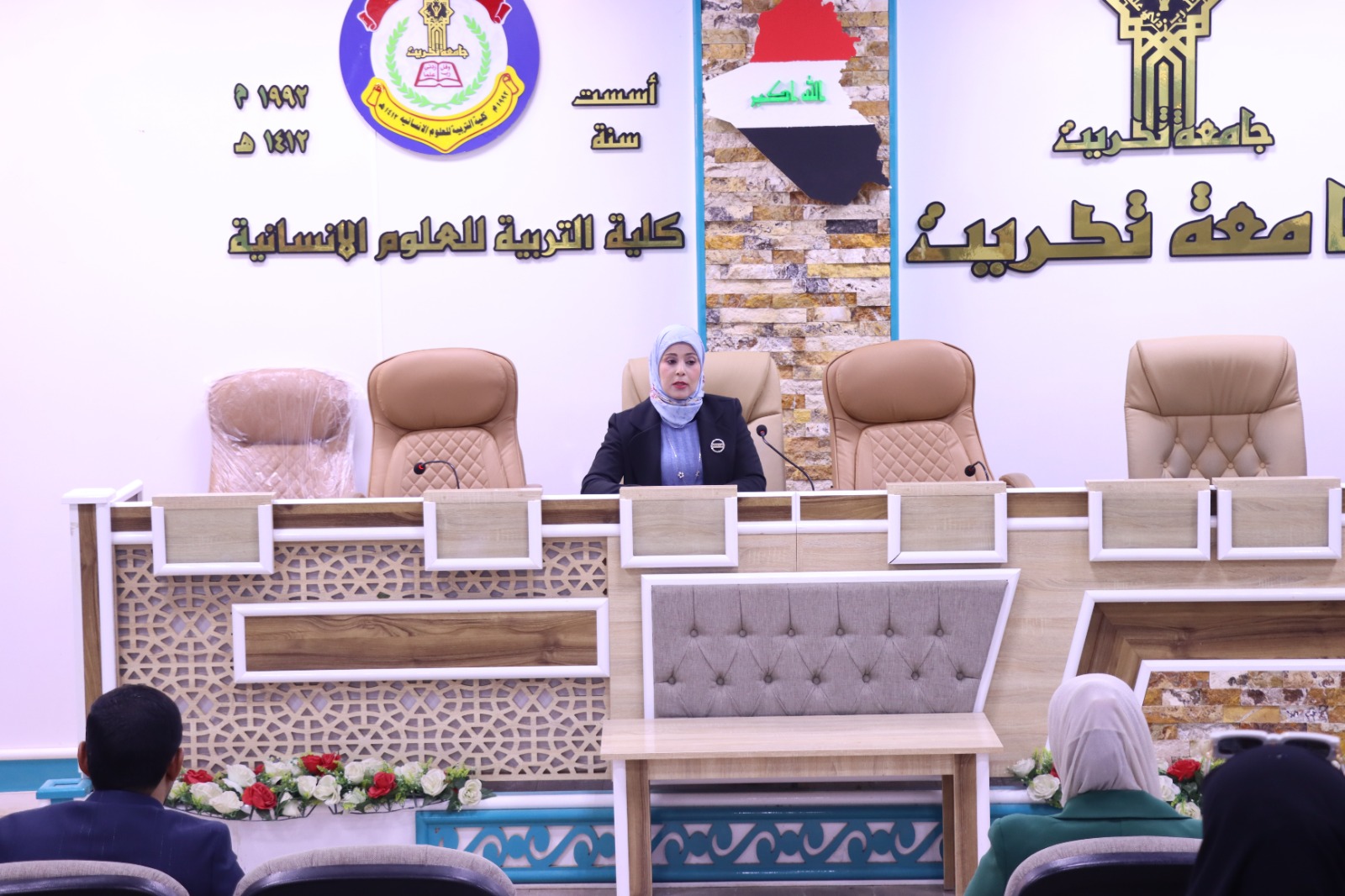 برعاية السيد رئيس جامعة تكريت الاستاذ الدكتور وعد محمود رؤوف وباشراف السيد عميد كلية التربية للعلوم الإنسانية الاستاذ الدكتور عماد حميد احمد اقام قسم اللغة العربية في كليتنا بالتعاون مع مركز التعليم المستمر اليوم الاثنين الموافق (٢٠٢٥/٢/٣) ندوة علمية بعنوان (اللغة العربية بلسان أهلها).