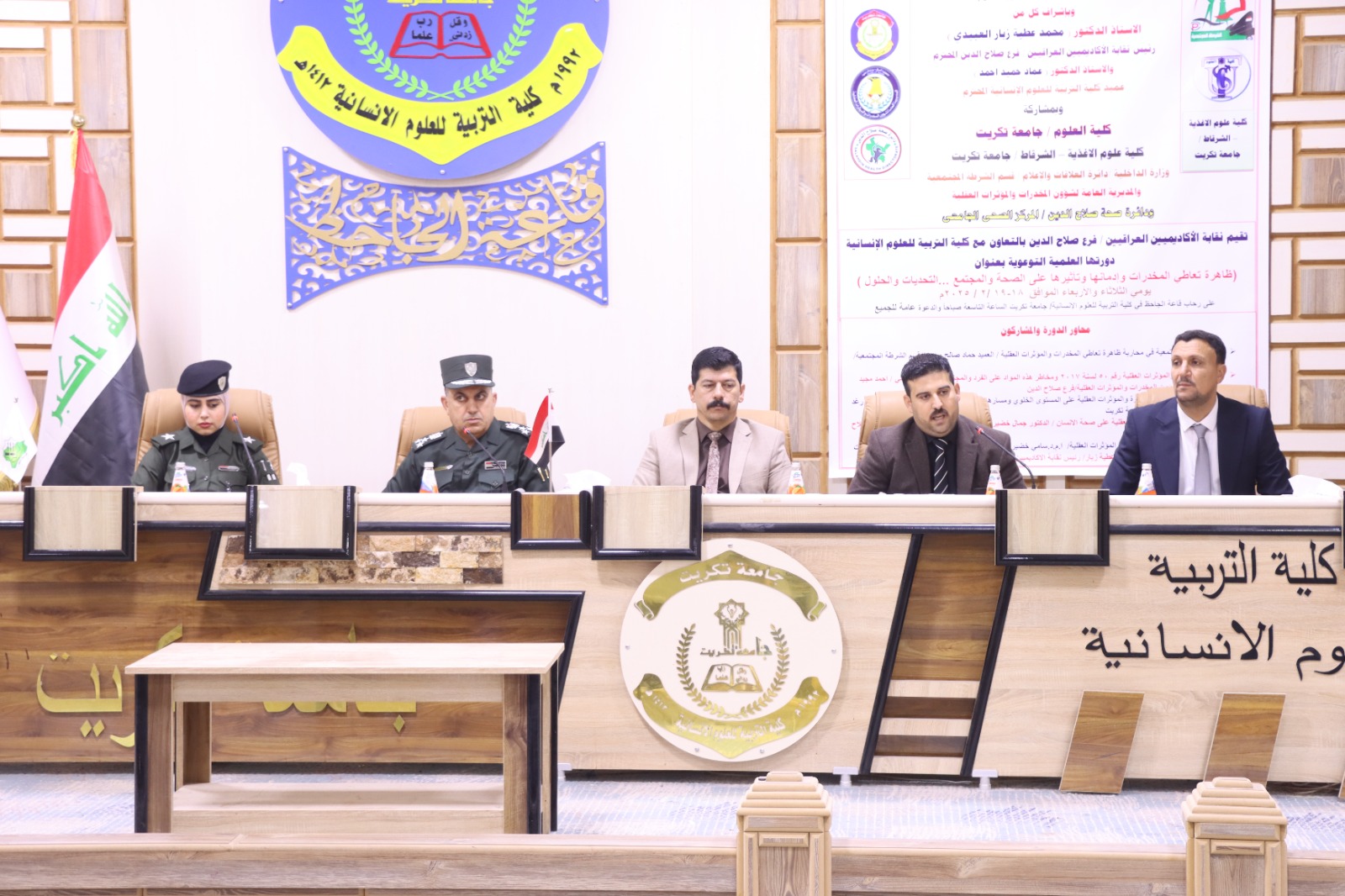 برعاية السيد رئيس جامعة تكريت الاستاذ الدكتور وعد محمود رؤوف والسيد نقيب الأكاديميين العراقيين الاستاذ المساعد الدكتور علي مسير ياسين وبإشراف السيد عميد كلية التربية للعلوم الإنسانية الاستاذ الدكتور عماد حميد احمد والسيد رئيس نقابة الأكاديميين العراقيين فرع صلاح الدين الاستاذ الدكتور محمد عطية زبار اقامت كليتنا بالتعاون مع نقابة الأكاديميين اليوم الثلاثاء الموافق (٢٠٢٥/٢/١٨) دورة علمية توعوية بعنوان (ظاهرة تعاطي المخدرات و إدمانها وتأثيرها على الصحة والمجتمع .. التحديات والحلول) وبمشاركة كلية العلوم في جامعة تكريت وكلية علوم الأغذية - الشرقاط ووزارة الداخلية دائرة العلاقات والإعلام قسم الشرطة المجتمعية والمديرية العامة لشؤون المخدرات والمؤثرات العقلية ودائرة صحة صلاح الدين .