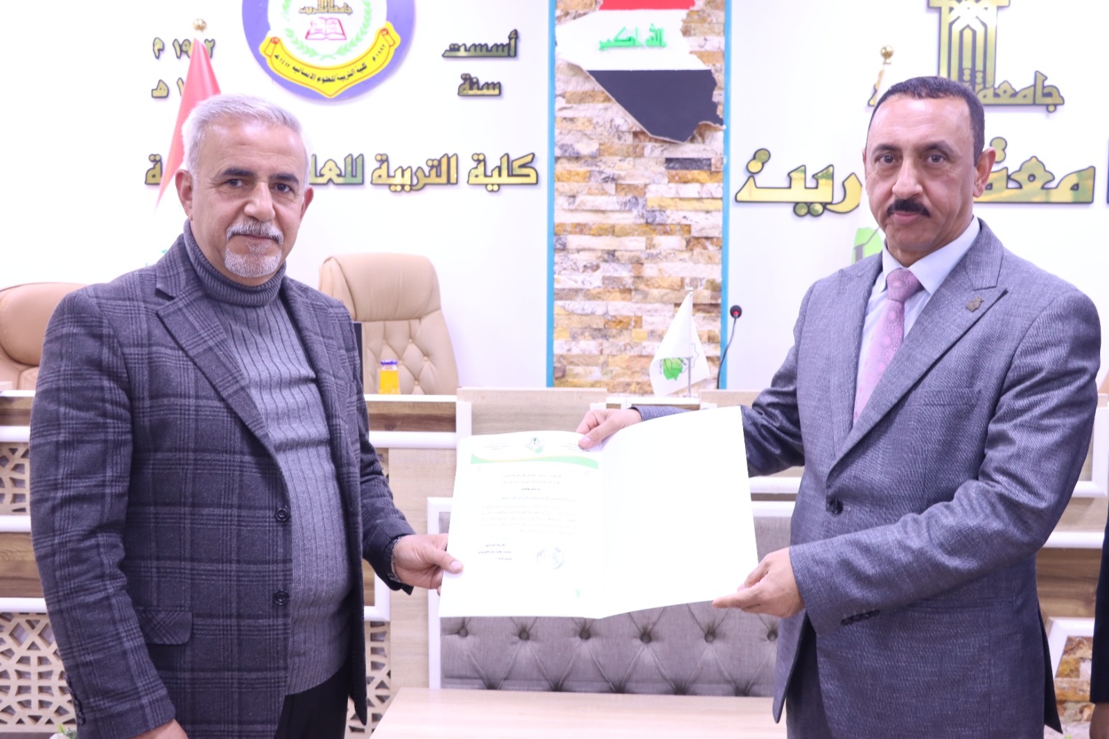 برعاية السيد رئيس جامعة تكريت الاستاذ الدكتور وعد محمود رؤوف والسيد نقيب الأكاديميين العراقيين الاستاذ المساعد الدكتور علي مسير ياسين وبإشراف السيد عميد كلية التربية للعلوم الإنسانية الاستاذ الدكتور عماد حميد احمد والسيد رئيس نقابة الأكاديميين العراقيين فرع صلاح الدين الاستاذ الدكتور محمد عطية زبار اقامت كليتنا بالتعاون مع نقابة الأكاديميين اليوم الاحد الموافق (٢٠٢٥/٢/٢٣) ورشة عمل بعنوان (كيف نحقق التعليم الأخضر في الجامعات العراقية).