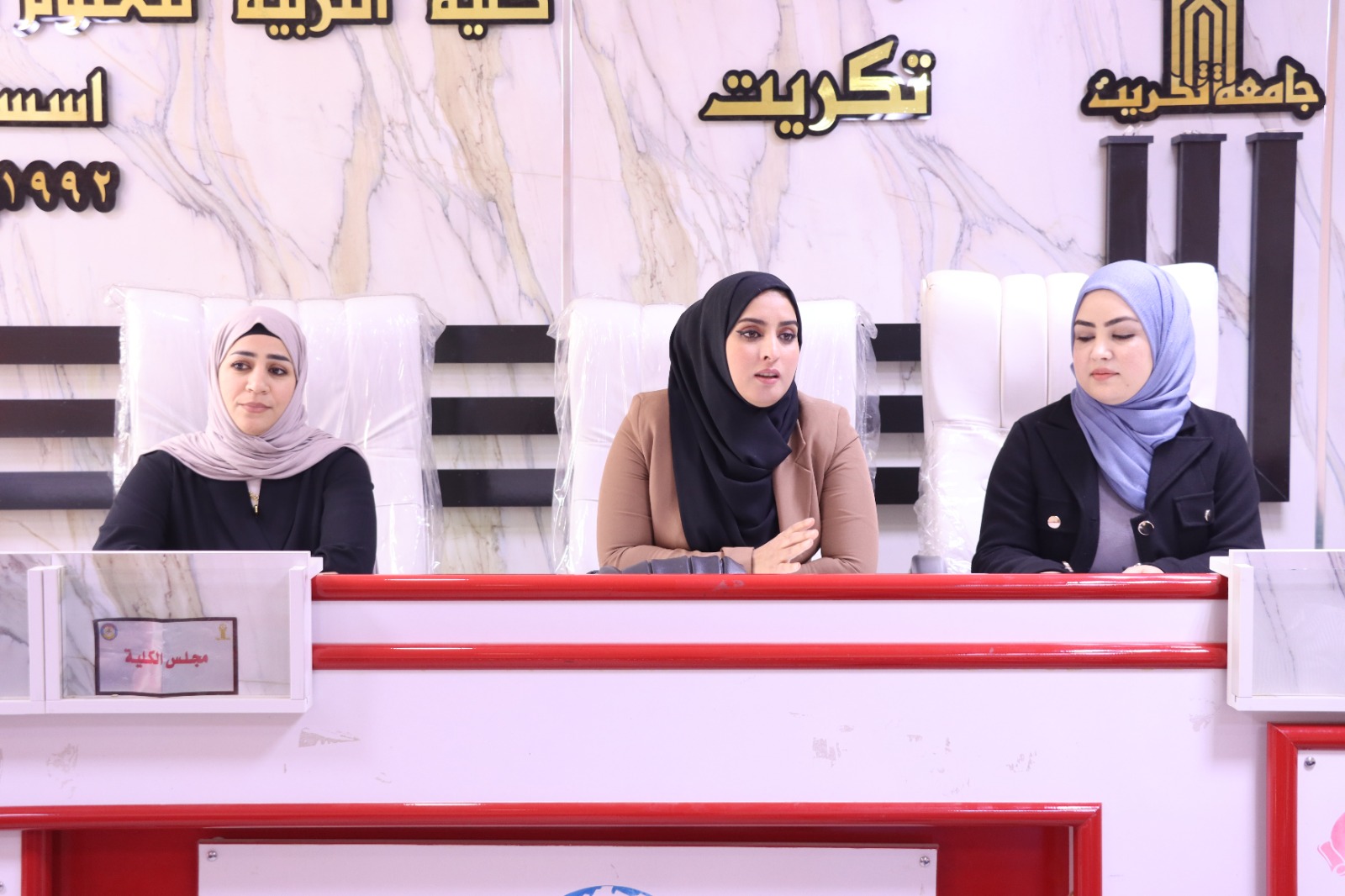 برعاية السيد رئيس جامعة تكريت الاستاذ الدكتور وعد محمود رؤوف وباشراف السيد عميد كلية التربية للعلوم الإنسانية الاستاذ الدكتور عماد حميد احمد اقامت وحدة شؤون المرأة في كليتنا بالتعاون مع مركز التعليم المستمر اليوم الثلاثاء الموافق (٢٠٢٥/٢/١٨) ندوة علمية بعنوان (دور التعليم في تعزيز حقوق المرأة: استراتيجيات محو الأمية كوسيلة للتغيير الاجتماعي تحديات).