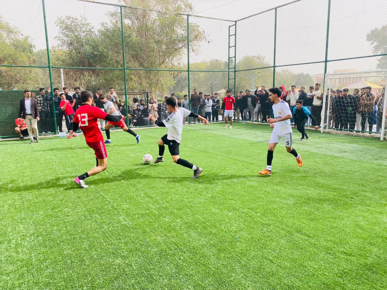 حصل فريق قسم اللغة الانكليزية على كأس بطولة المرحوم (احمد حميد رجب) لكرة القدم بعد تغلبه على فريق قسم العلوم التربوية والنفسية في الركلات الترجيحية اليوم الأربعاء الموافق (٢٠٢٥/٢/٥) والتي اقيمت في الملعب الخماسي لكلية التربية للعلوم الإنسانية ، برعاية وإشراف السيد عميد كلية التربية للعلوم الإنسانية الاستاذ الدكتور عماد حميد احمد ، اذ تهنئ عمادة الكلية فريق قسم اللغة الانكليزية ، وتثمن جهود شعبة النشاطات الطلابية متمثلةً بالمدرس المساعد علاء جمعه مطر ، راجين لهم دوام الموفقية والنجاح في مسيرتهم العلمية والرياضة.